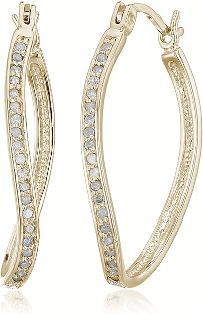Amazon Com Pendientes De Aro De Plata De Ley Con Diamante 1 4 Amarillo Jewelry
