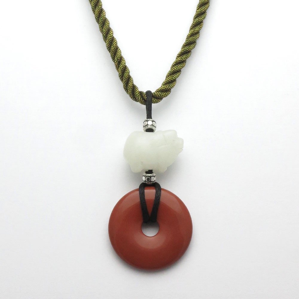 18th Century White Jade Pendant Fu Shou Prosperity Longevity Chinese White Jade Jewelry