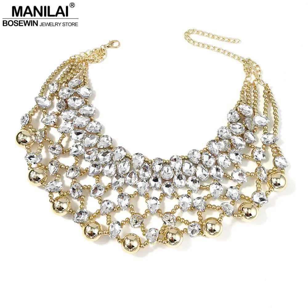 Bride Necklace Pearl Bib Necklace Bold Bridal Pearl And Rhinestone Chunky Wedding Jewelry