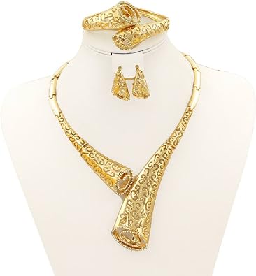 Fashion Indian Bridal Earrings Necklace Set Dubai Luxury Crystal Costume Wedding Jewelry