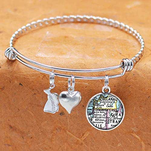 Amazon Com Michigan Map Bracelet Traverse City Mi Usa States Jewelry Stores Traverse City
