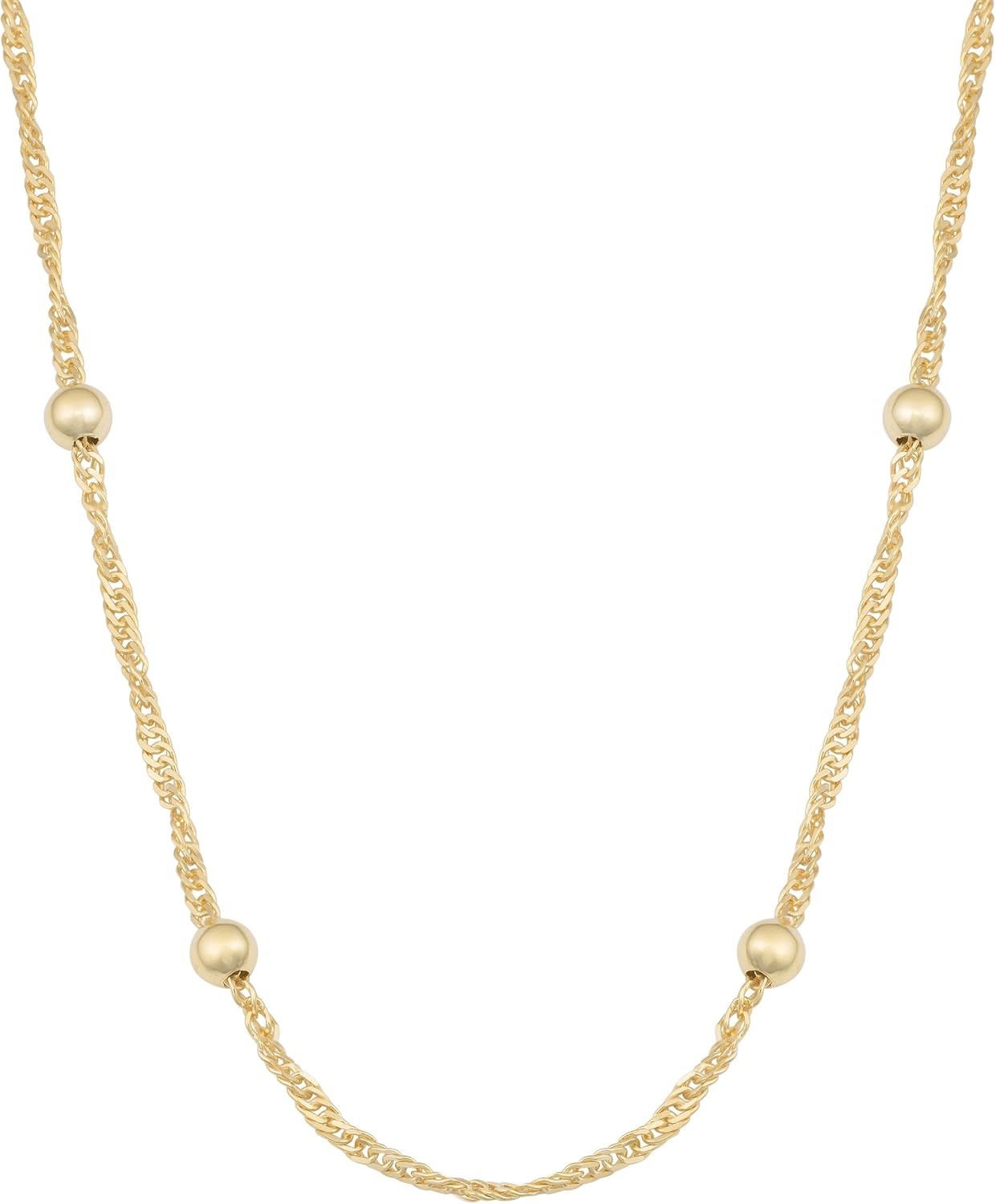 Amazon Com Kooljewelry Yellow Gold Plated Silver 4 Mm Bead Station Singapore Chain Necklace 16 Inch Jewelry Jewelry Supply Stores Near Me