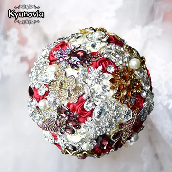Brooch Flores Novia Wedding Bouquets Pink Red Blue Artificial Rose Jewelry Wedding Bouquet