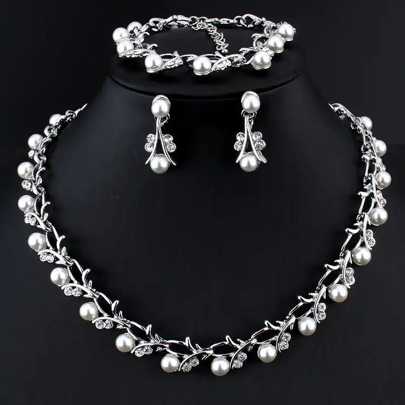 Swarovski White Pearl Bridal Jewelry Set Habibi Jewelry Pearl Wedding Jewelry