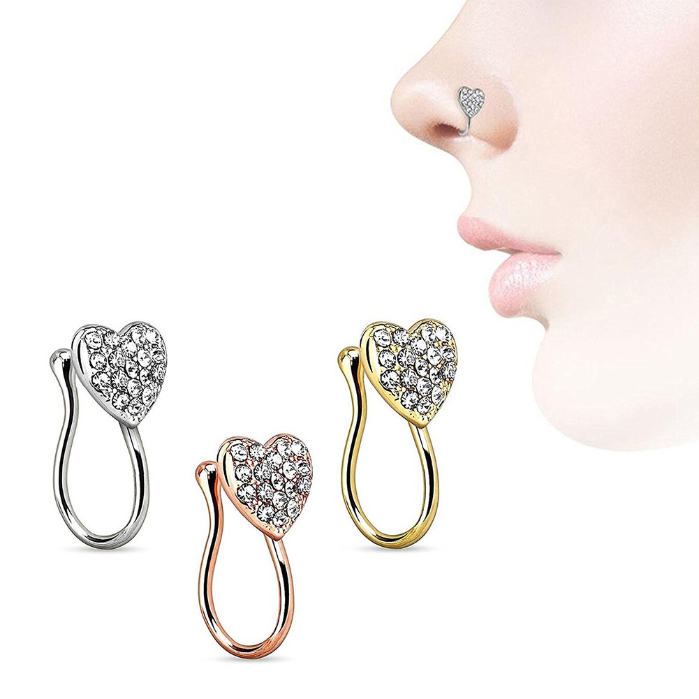 Df Rings Heart Nose Ring Rhinestone Piercing Jewelry Clip Septum Piercing Jewelry Shops Near Me