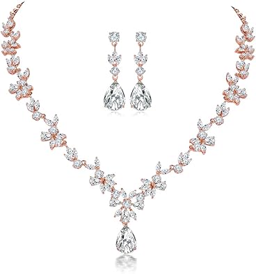 18k Rose Gold Bridal Bridesmaid Necklace Earrings Jewellery Set Rose Gold Bridal Wedding Jewelry Set