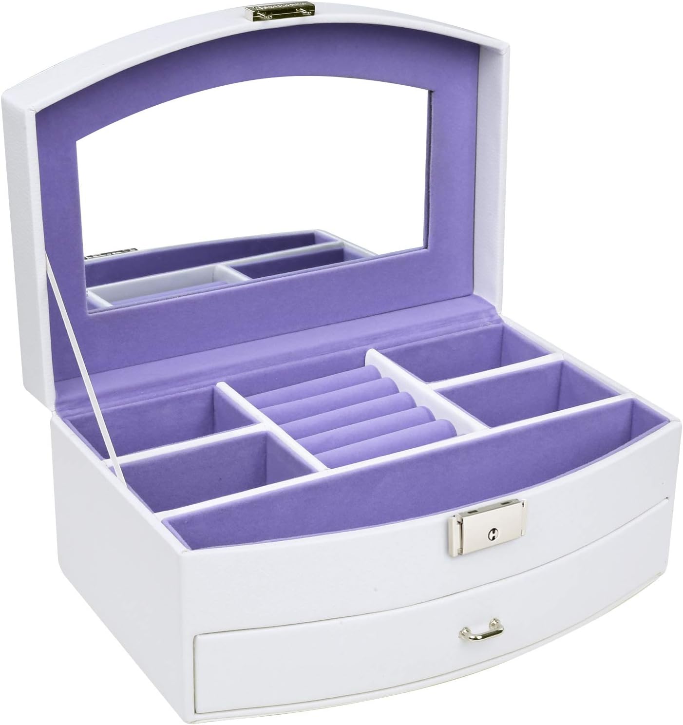 With Full Length Inside Mirror Foldable Top Tray Lockable Jewelry Songmics Jewelry Box 8 Layer
