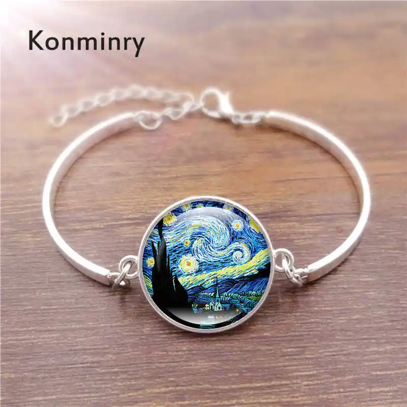 Konminry Van Gogh Starry Night Jewelry Sets Round Glass Painting Starry Night Jewelry