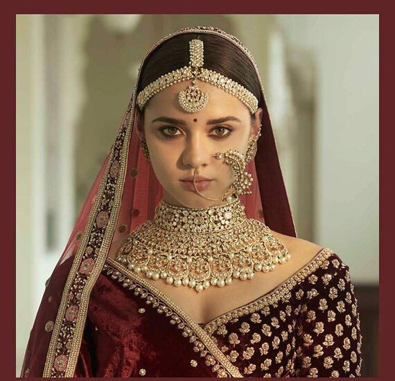 Bridal Traditional Kundan And Pearl Necklace Set Jadau Etsy Traditional Wedding Jewelry Set