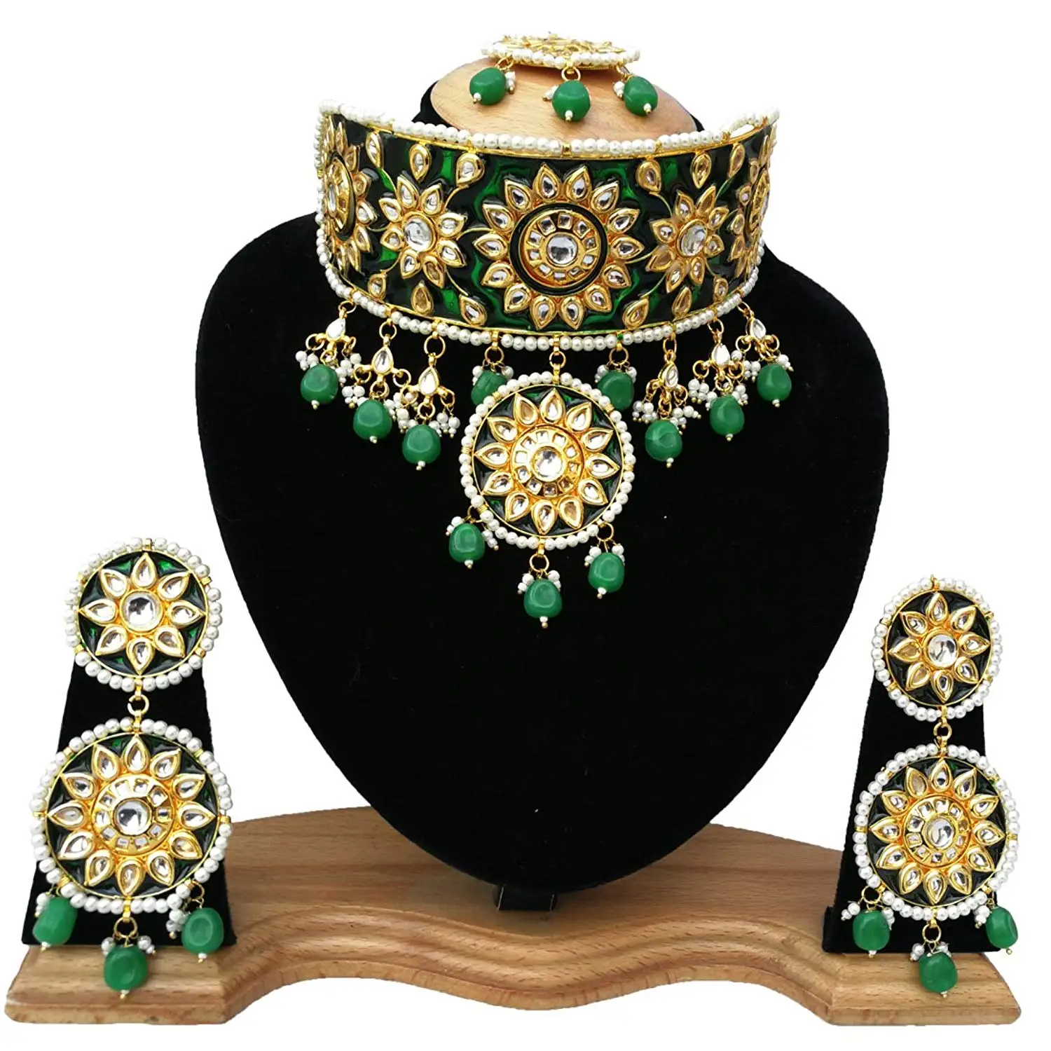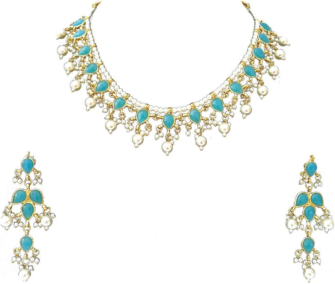 Finekraft Meena Kundan Bridal Wedding Designer Gold Plated Pearls Wedding Design Gold Jewelry Set