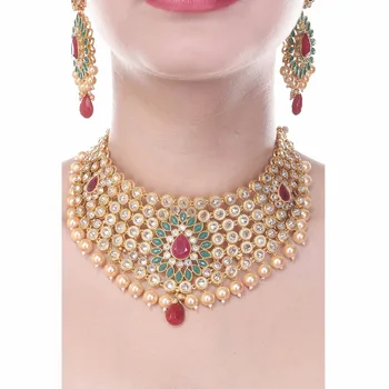 Artificial Jewelry Golden Eon Meenakari Enamel Kundan Choker Wedding Jewellery Set Indian