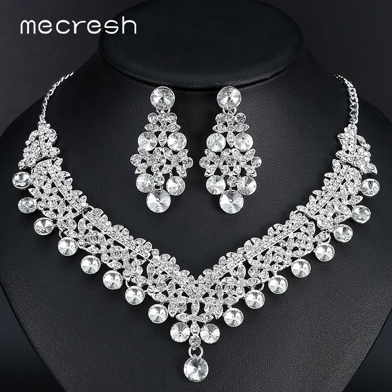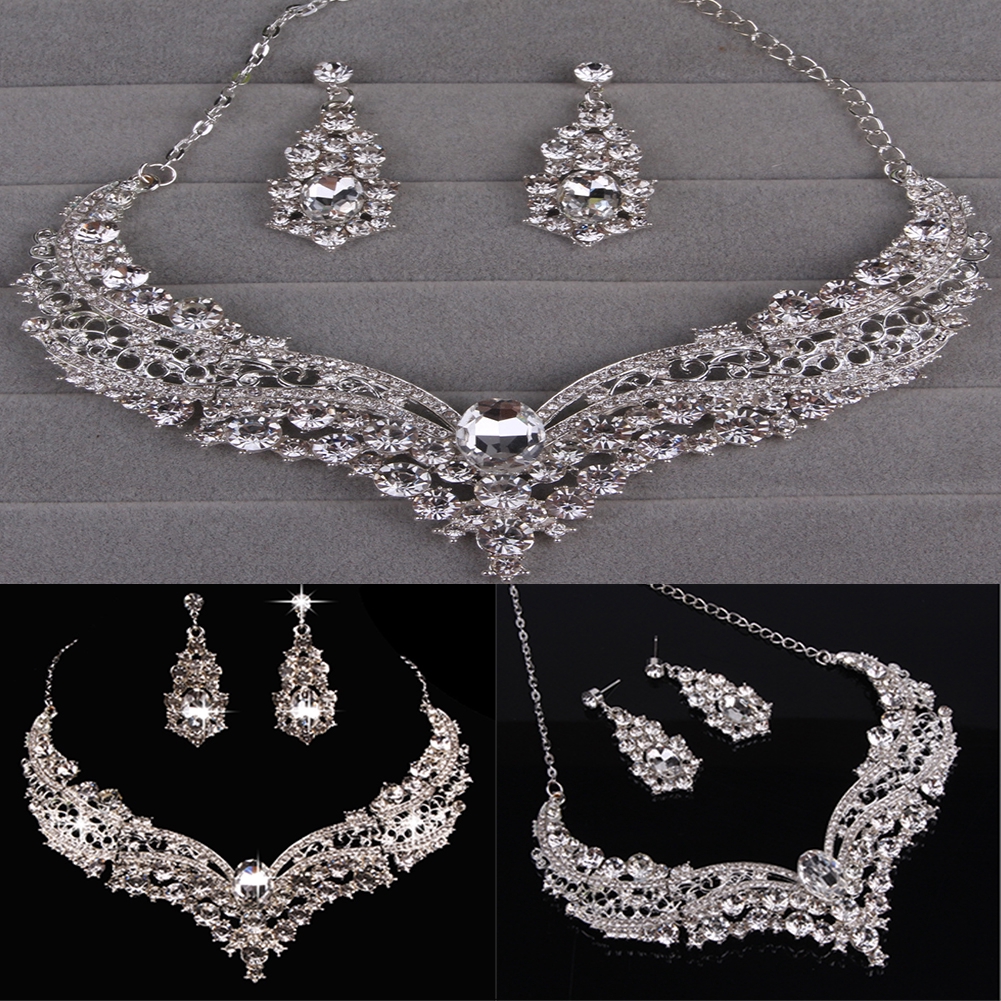 2018 Bling Crystal Bridal Jewelry Set Silver Plated Necklace Wedding Jewellery Set Silver