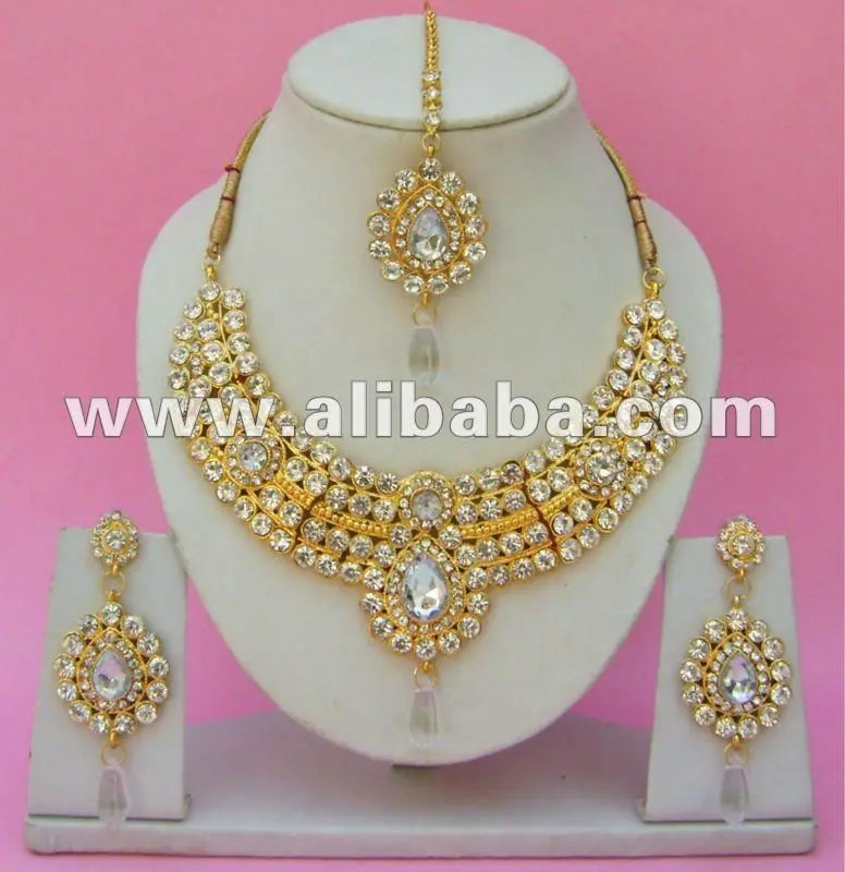 Buy Pranaam Product South Indian Traditional Bridal Latest Short Wedding Jewelry White Stone Jewellery Set For Bride